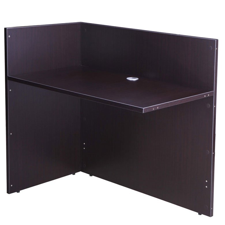 Boss Office Products N180-MOC is a Reversible Reception Return in deep, warm Mocha. It is intended for use only with the N169 Reception Desk Shell (sold separately), and can be connected to be functional in either right or left handed applications. It is constructed of thermal fused melamine with 3mm PVC edge banding, which offer excellent durability and scratch resistance. It comes with a 1 inch thick top that provides a sturdy surface that will require little maintenance. The 3 inch round grommets on all work surfaces make for easy cable and wire management, and are compatible with the BOSS power grommets (sold separately).