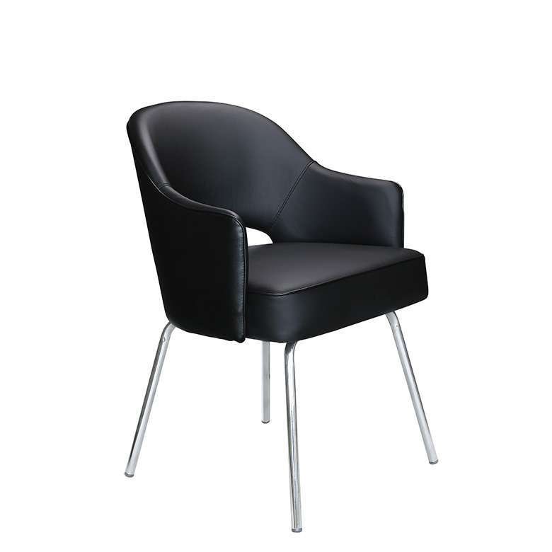 The guest chair in black is an exceptionally handsome design of a chair. The guest chair features vinyl a fixed arms design and a breathable, semi-open back in vinyl for extreme comfort as well. The chair itself is understated and sleek and offers a professional guest seating option for any office or room. It also boats a strong, sturdy 4 leg tubular chair base. The base is designed in chrome and the chair has a weight limit of 275 lbs.