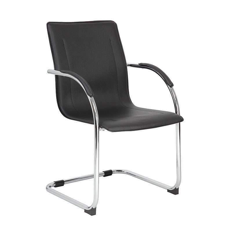 This strikingly luxurious side-chair is designed with a high-quality chrome frame that screams class and an easy to clean black vinyl seat that is beyond comfortable for any guests. The base of the chair is a chrome cantilever design and offers a weight capacity of 275 lbs. This chair itself is the perfect blend of class and professionalism, without sacrificing comfort or quality. The chair is sold 4 pieces per pack and would make a great accompaniment to most any office.