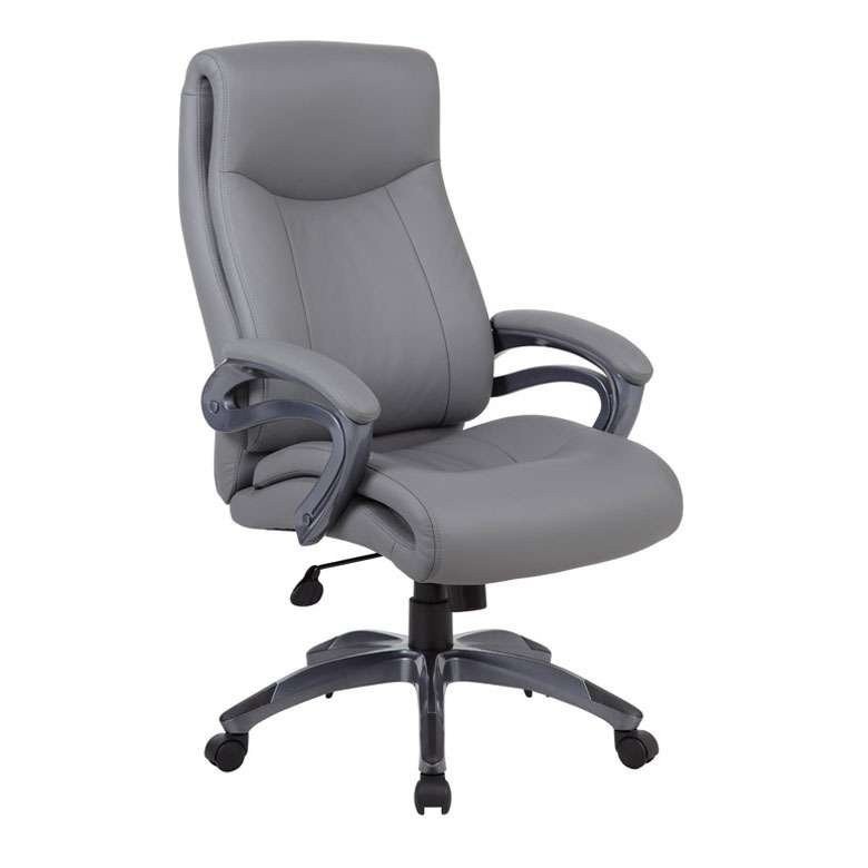 When it comes to comfort, our double layer executive chair will make sure you never settle for second best. It is elegantly upholstered in grey LeatherPlus, a comfortable combination of leather and polyurethane that provides softness and durability. In addition to its padded armrests and gun metal finish, it features pneumatic gas lift seat height adjustment and adjustable tilt tension control. All of this rests atop a large 27 nylon base with five hooded double wheel casters.