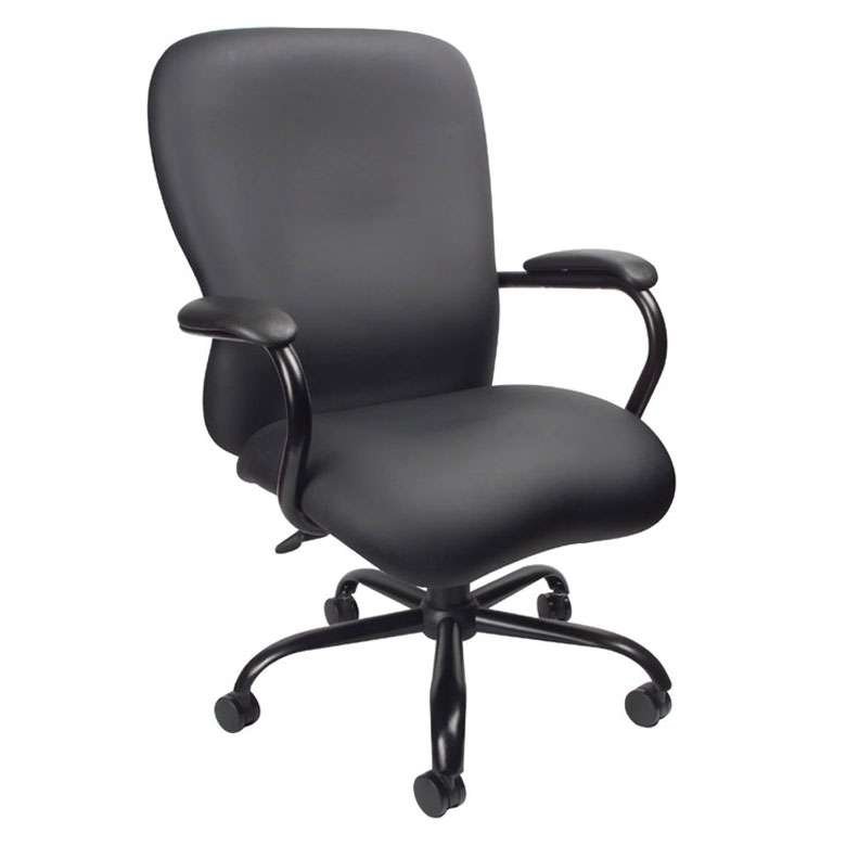 Our heavy duty executive chairs make the perfect addition to any office, board room, or study. Their 400 pound weight capacity renders them compatible with a broad range of different body types. They are beautifully upholstered in breathable black Caressoft and feature a black frame. Additionally, they sport padded arms oriented in steel wrap around style construction. In terms of personalization, the chair features improved pneumatic gas lift seat height adjustment, and a 2 paddle heavy duty spring tilt mechanism with tension control that can be locked anywhere within the tilt range.
