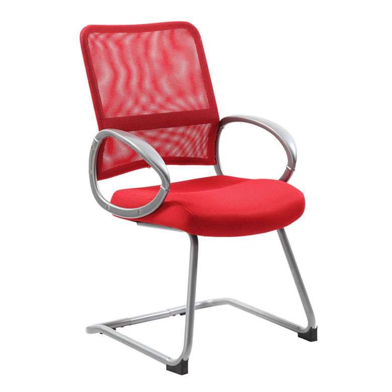 The mesh back guest chair in red with a pewter finish is a fun, modern and minimalist design of a chair. The guest chair features a loop, fixed arms design and a breathable mesh back and seat that is not only stylish, but comfortable too. The chair itself adds a pop of color, as well as a professional guest seating option for most any room or office. The chair has a stationary height and a weight limit of 275 lbs.