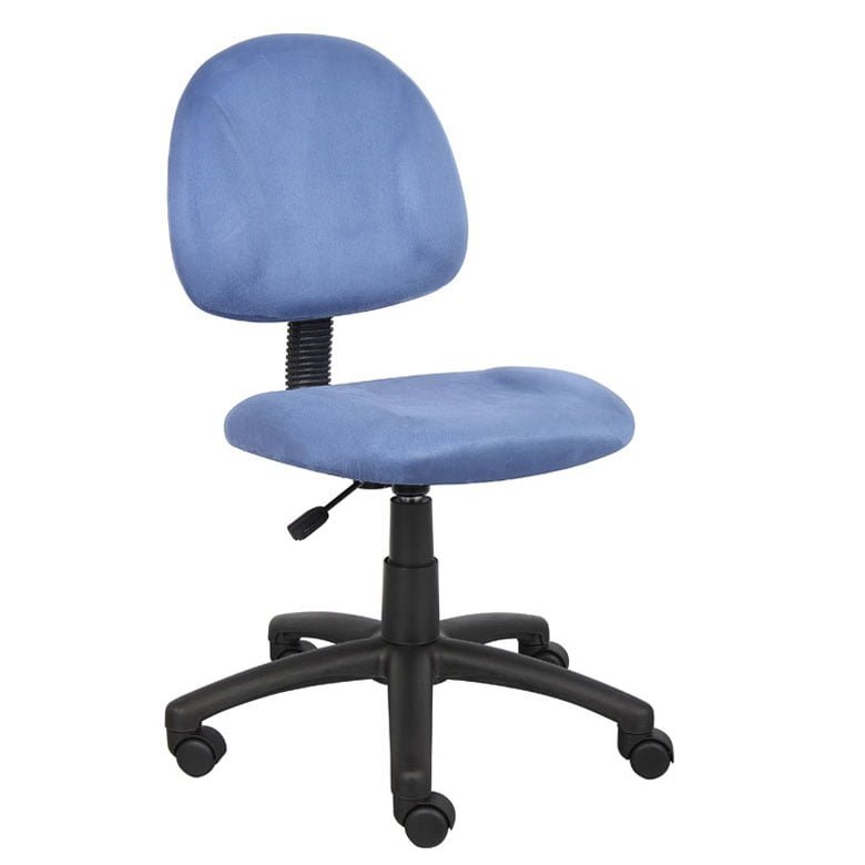 This Blue Microfiber Deluxe Posture Chair comes with a thick padded seat and back with built in lumbar support. It has an adjustable back depth that can be easily customized for your personal needs. The pneumatic adjustable gas lift allows for easy seat height adjustment, to help you find the personalized sitting style that suits you and your work environment. The five star nylon base allows for smooth movement and stability. The hooded double wheel casters make it easy to move and shift directions.