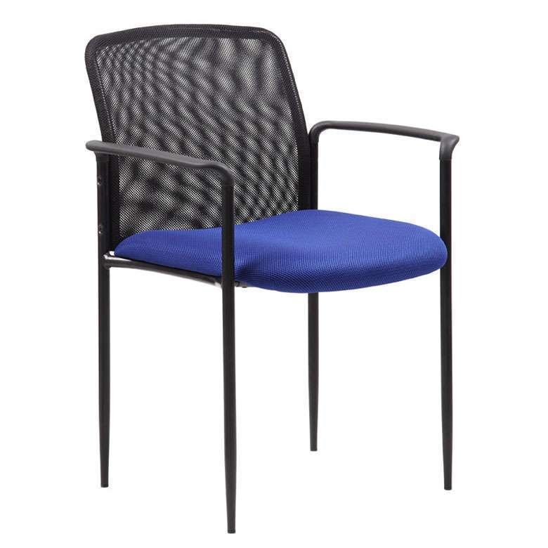The stackable mesh guest chair in blue is the perfect addition to any room or office. For smaller spaces, the chair can be stacked 4 high and stored away when not in use. The chair is at a fixed height with fixed arms and is designed with a mesh seat as well as a breathable, airy mesh back. The blue seat adds a pop of color to any room, while maintaining a modern, professional appearance. The chair has a weight limit of 275 lbs.
